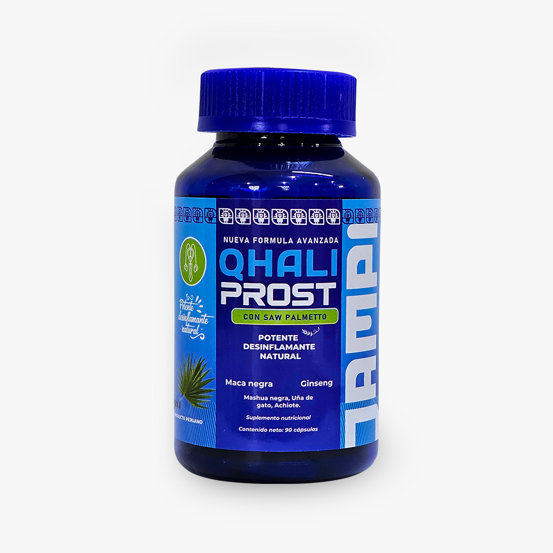 QHALI PROST de Jampi Natura es un complemento natural formulado con potentes extractos vegetales reconocidos por sus beneficios para la salud prostática, hormonal y sexual. Su ingrediente principal, el Saw Palmetto, cuenta con respaldo científico por su capacidad para reducir la inflamación de la próstata y mejorar el flujo urinario.